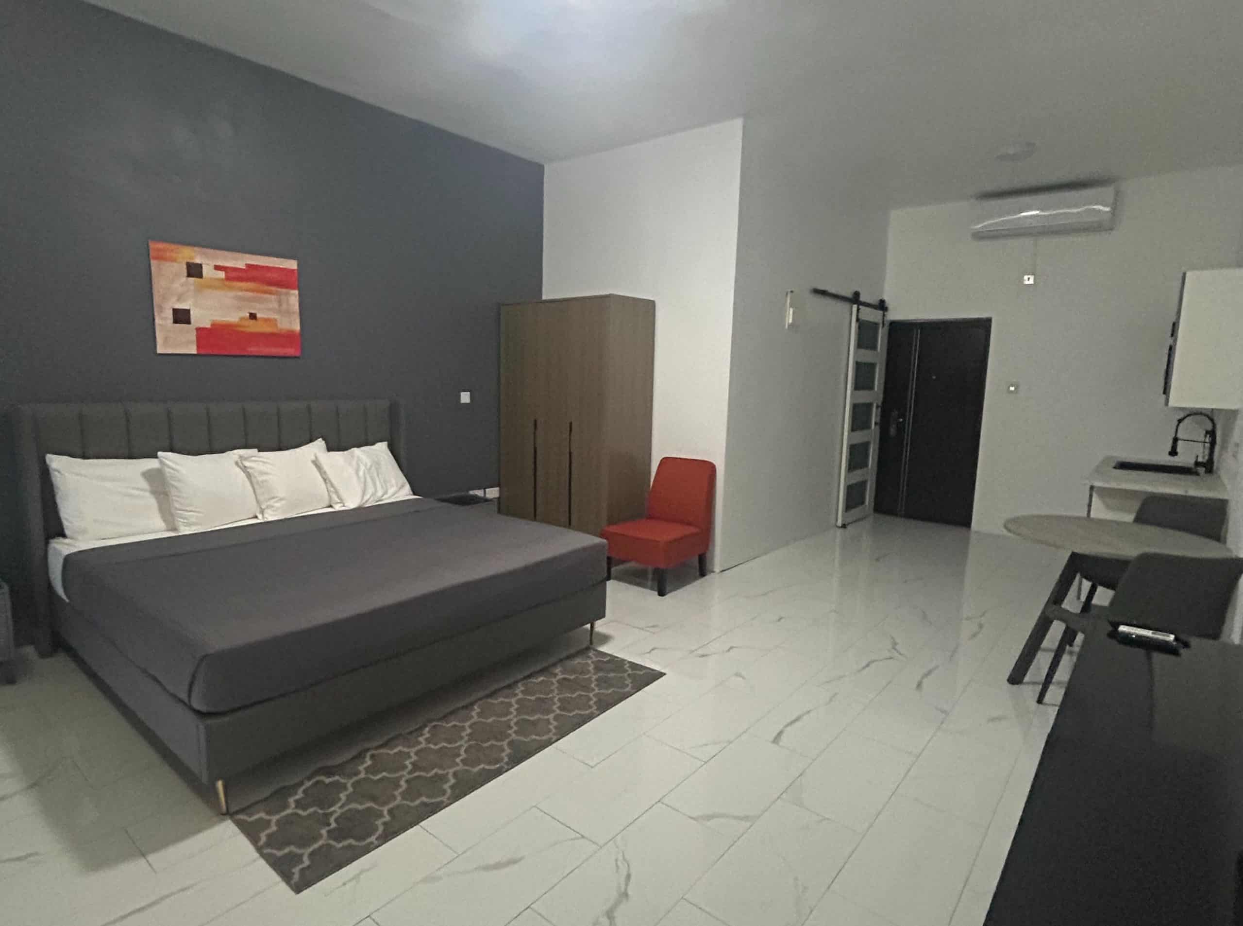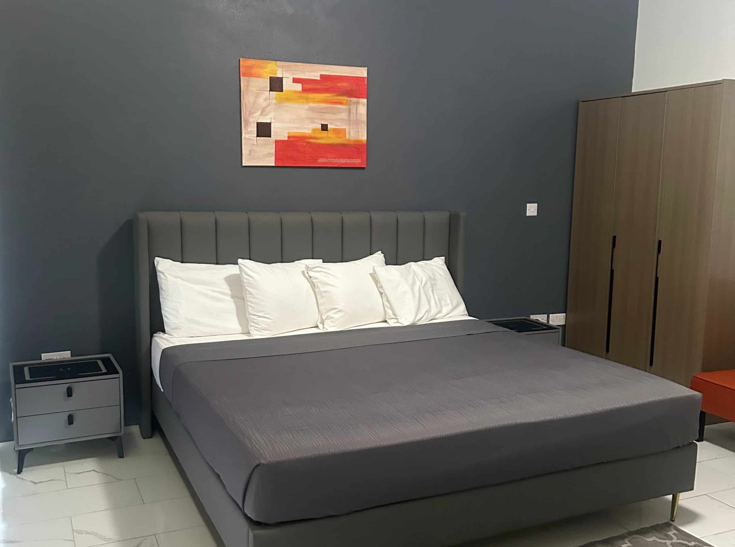 The bedroom exudes minimalist luxury...