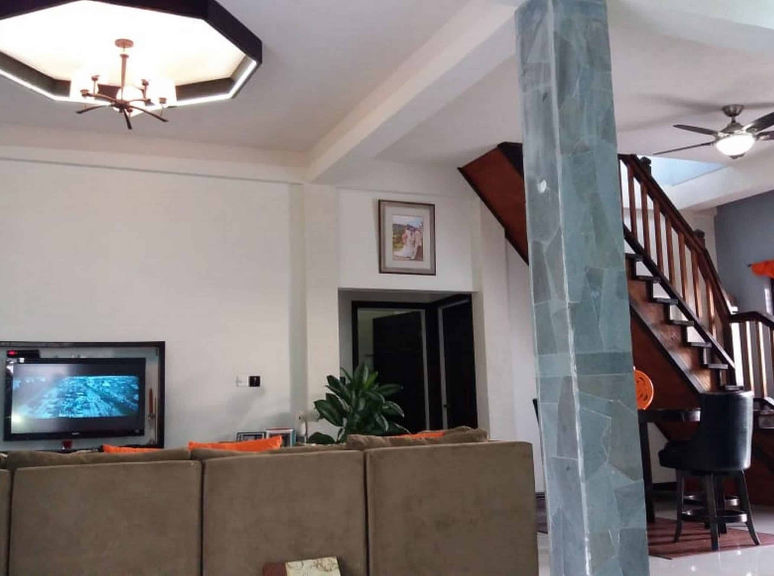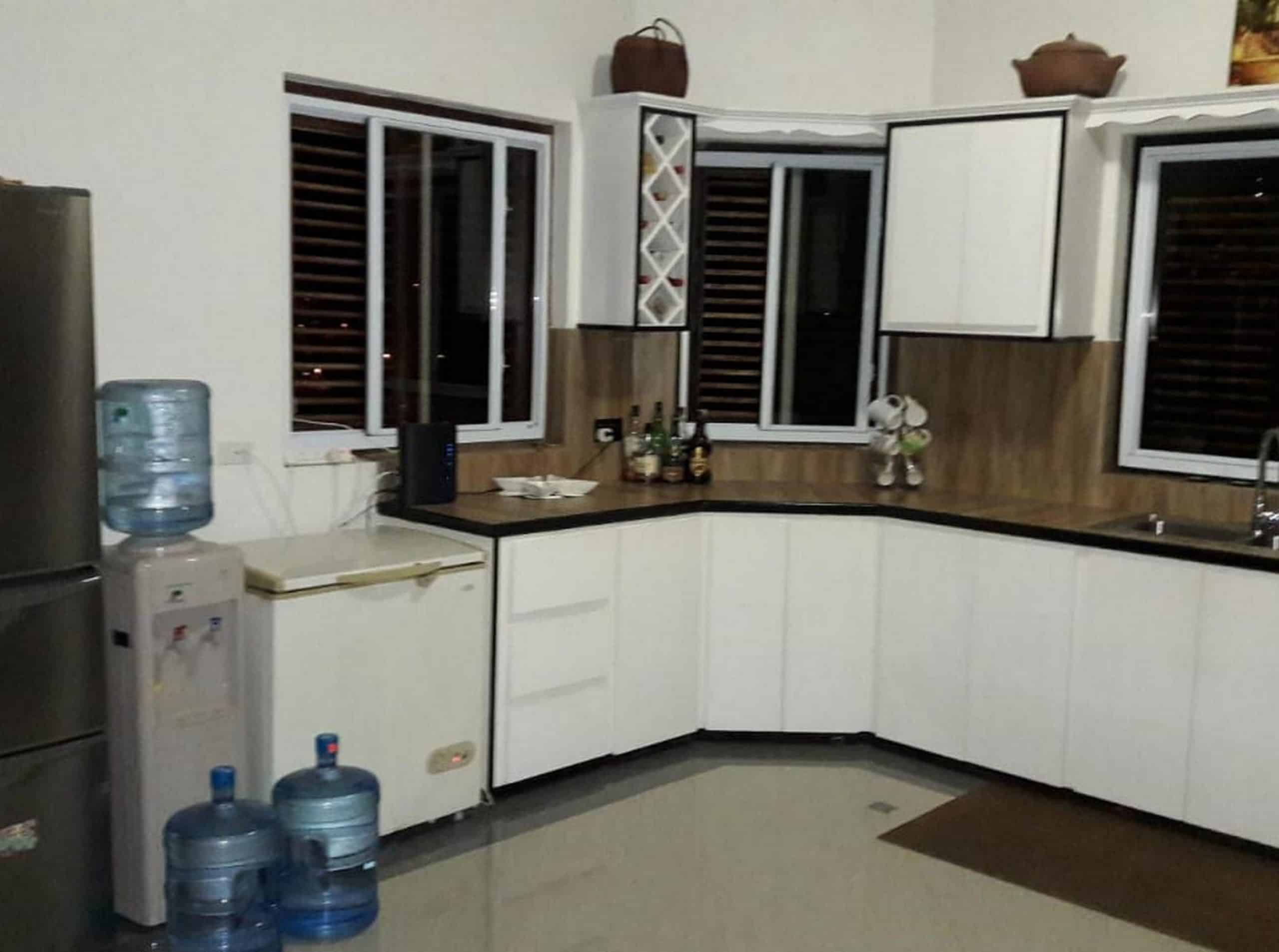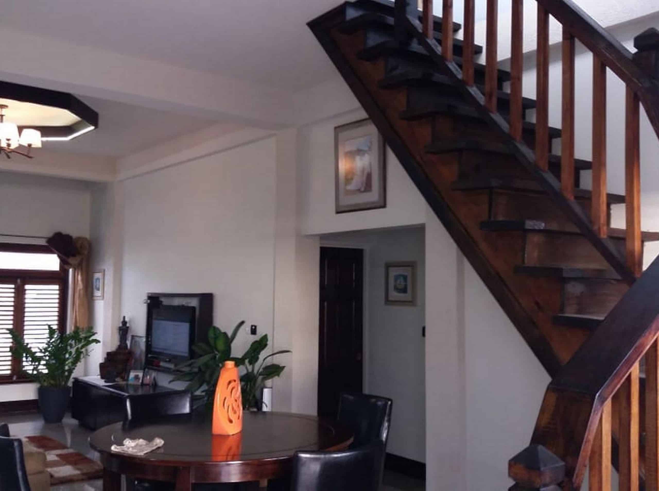 Upstairs the main accommodation offers 3 bedrooms and 2 bathrooms with open floor plan and porcelain tiles throughout.  The kitchen is fully equipped with modern finishes, stainless-steel appliances and gas stove. Master bedroom is en-suite with jet tub, outside spa shower and large walk-in closet.
