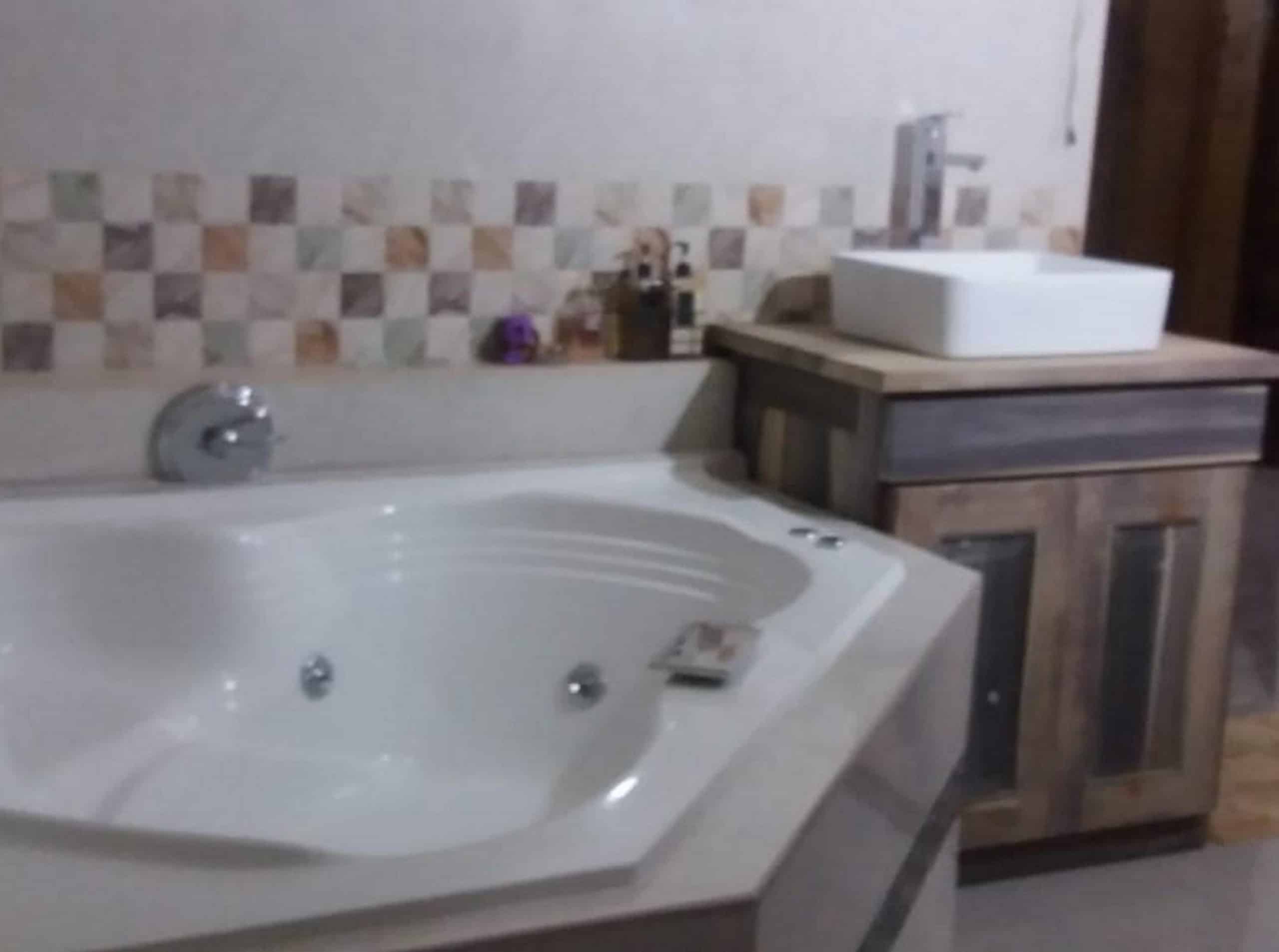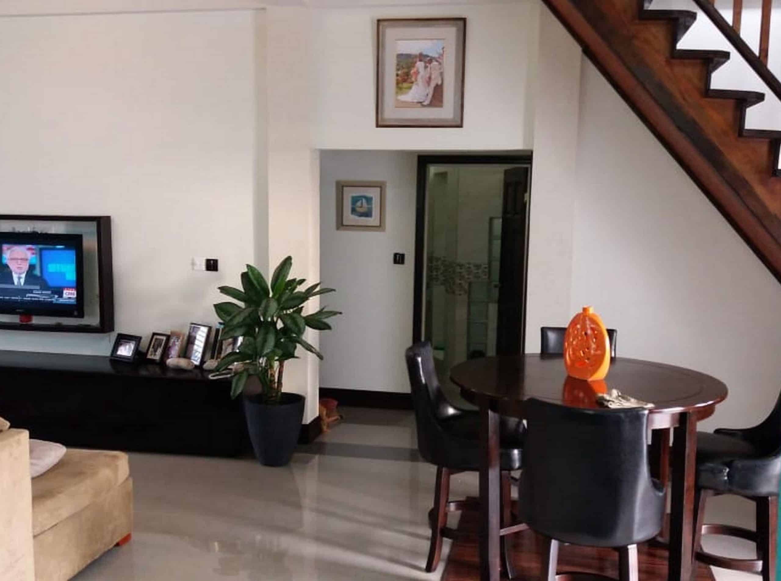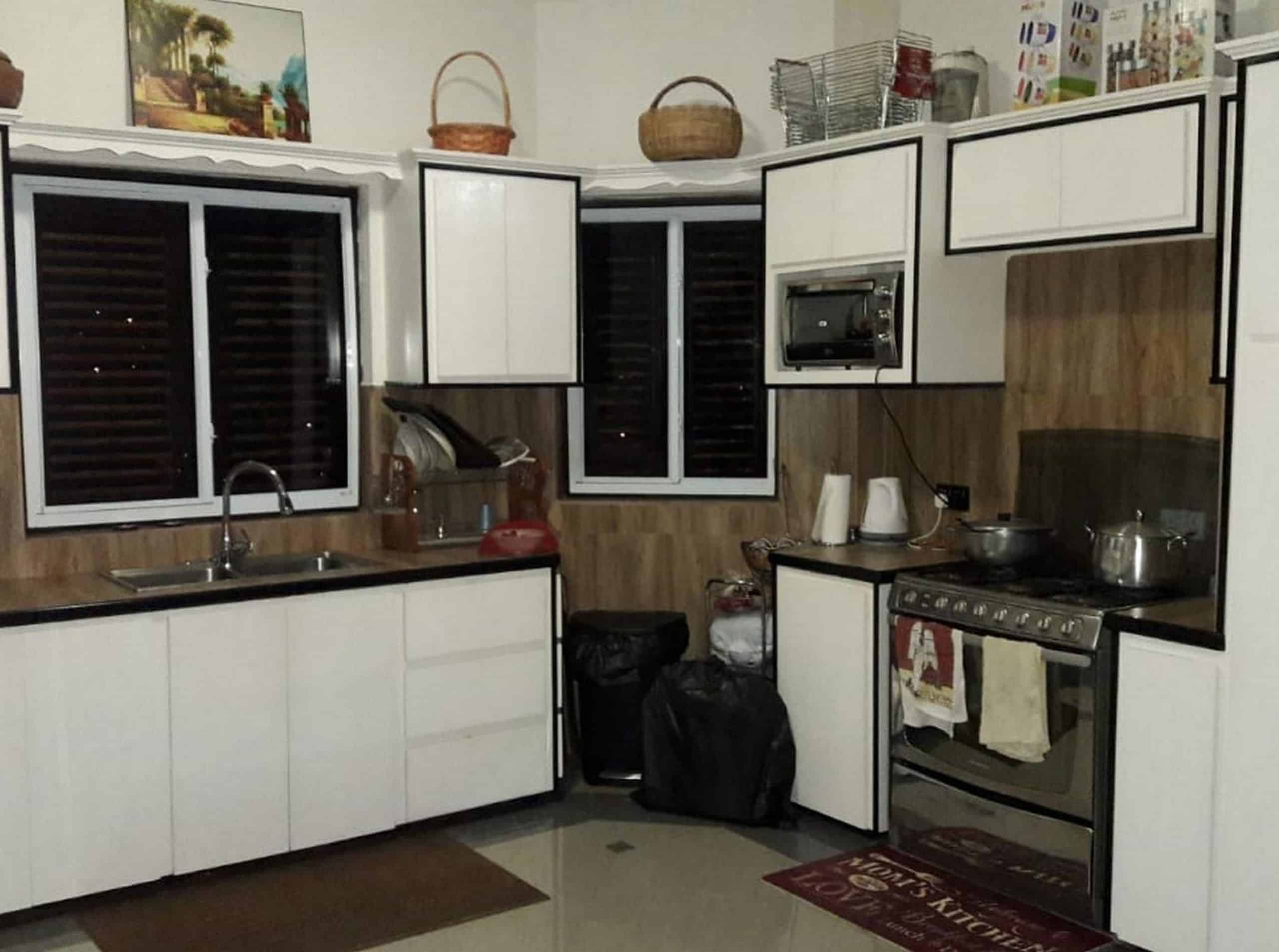 Upstairs the main accommodation offers 3 bedrooms and 2 bathrooms with open floor plan and porcelain tiles throughout.  The kitchen is fully equipped with modern finishes, stainless-steel appliances and gas stove. Master bedroom is en-suite with jet tub, outside spa shower and large walk-in closet.