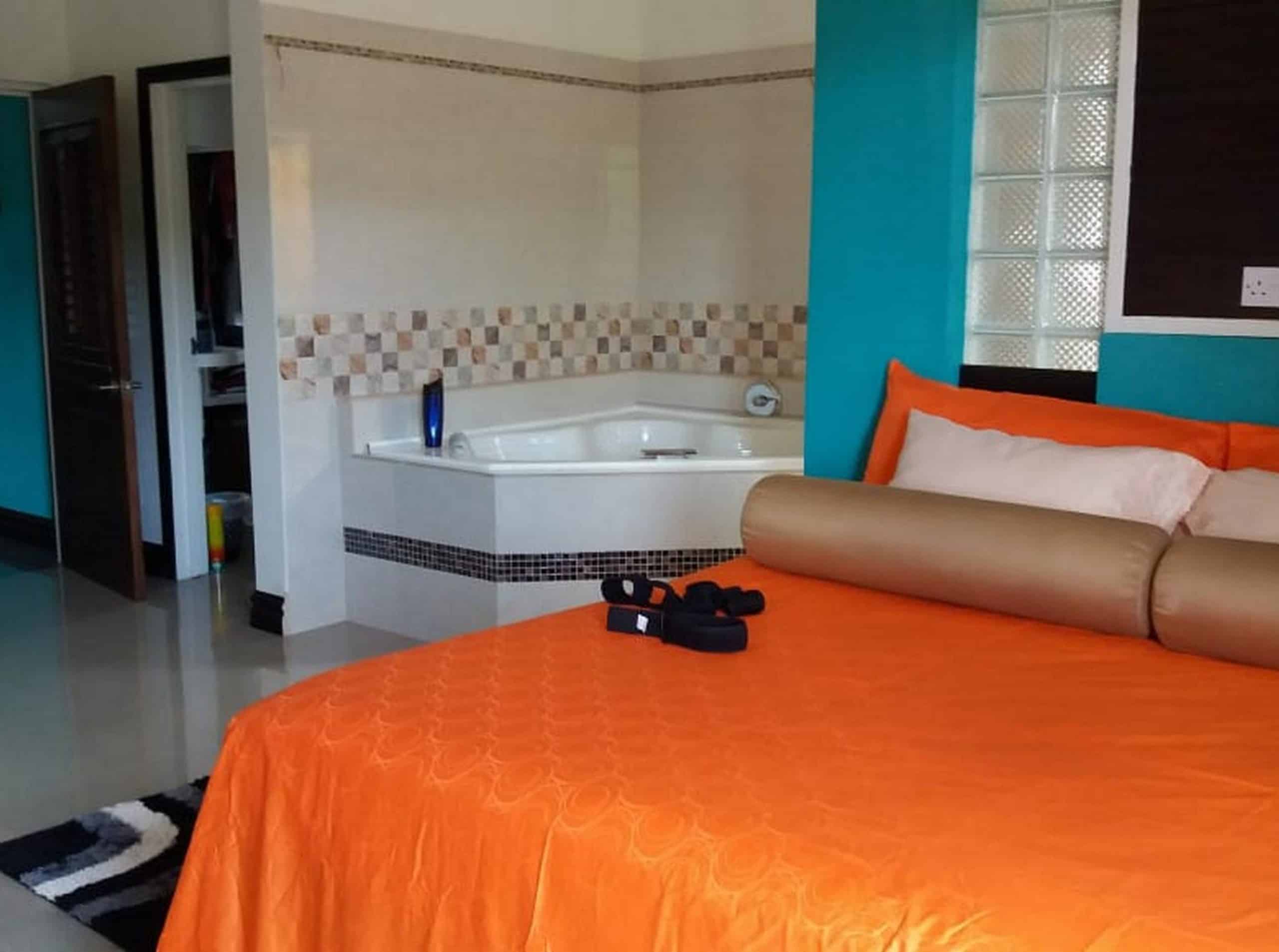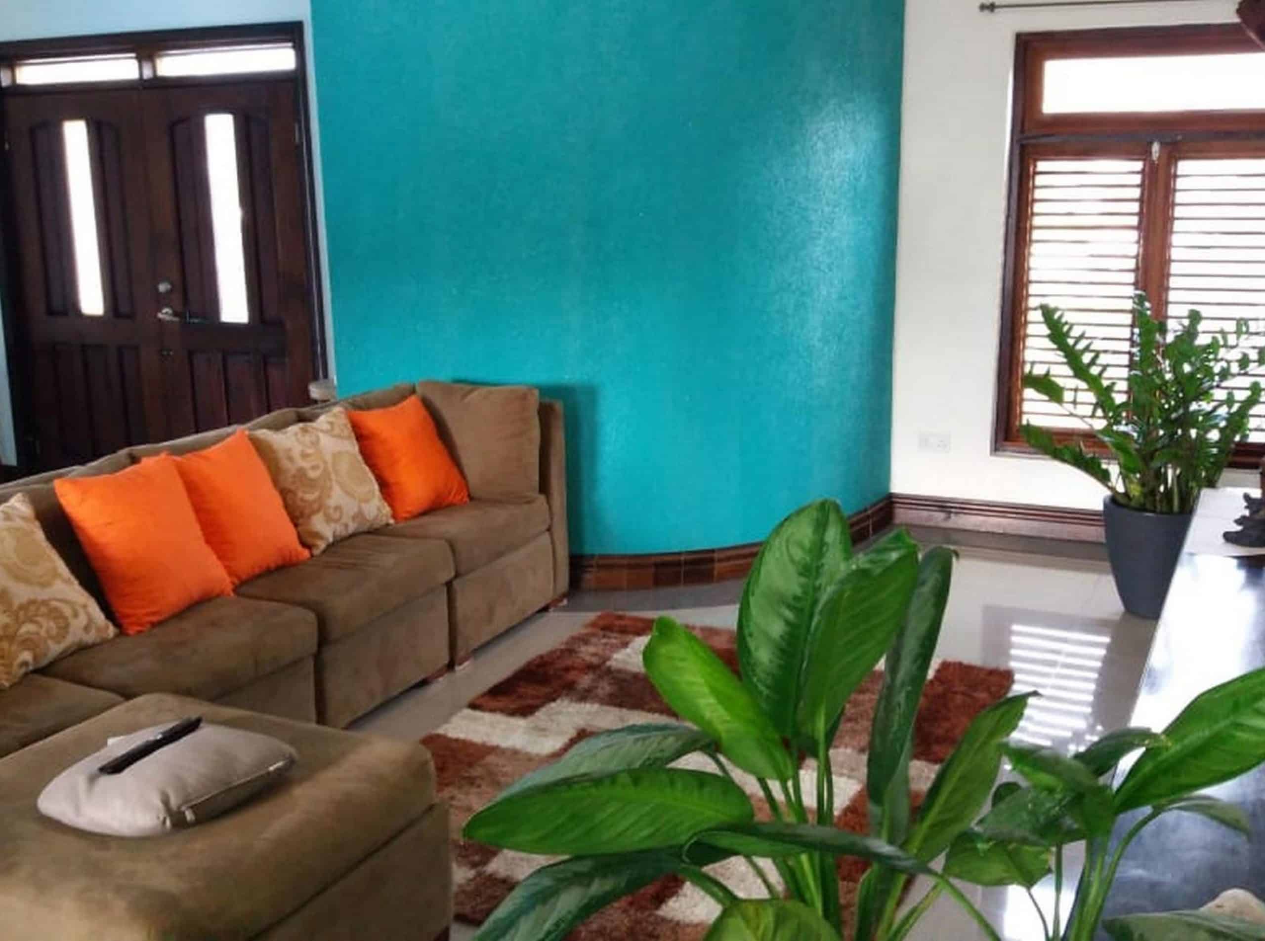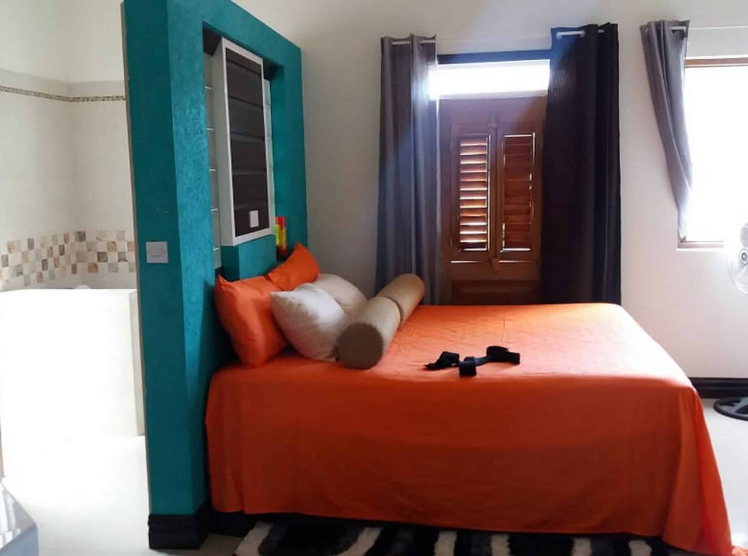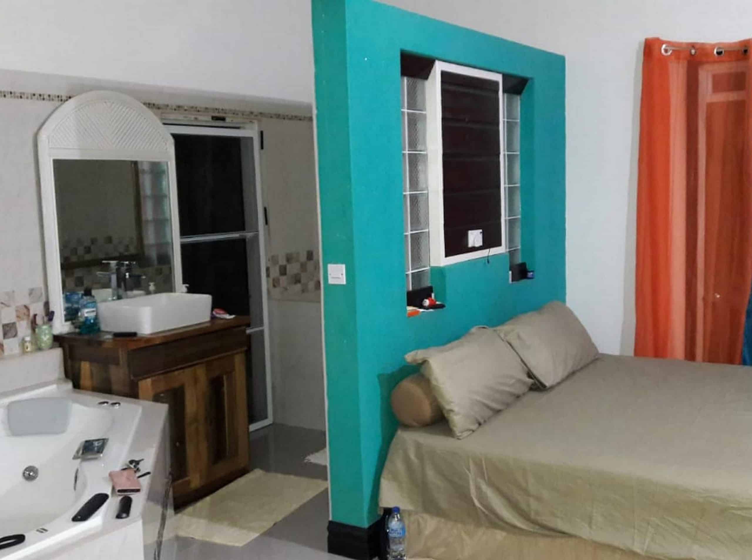 Off the hallway are two further bedrooms and a full bathroom with tub. The villa features a grande entertainment roof-top terrace with stunning views of the mountains and the Caribbean Sea.