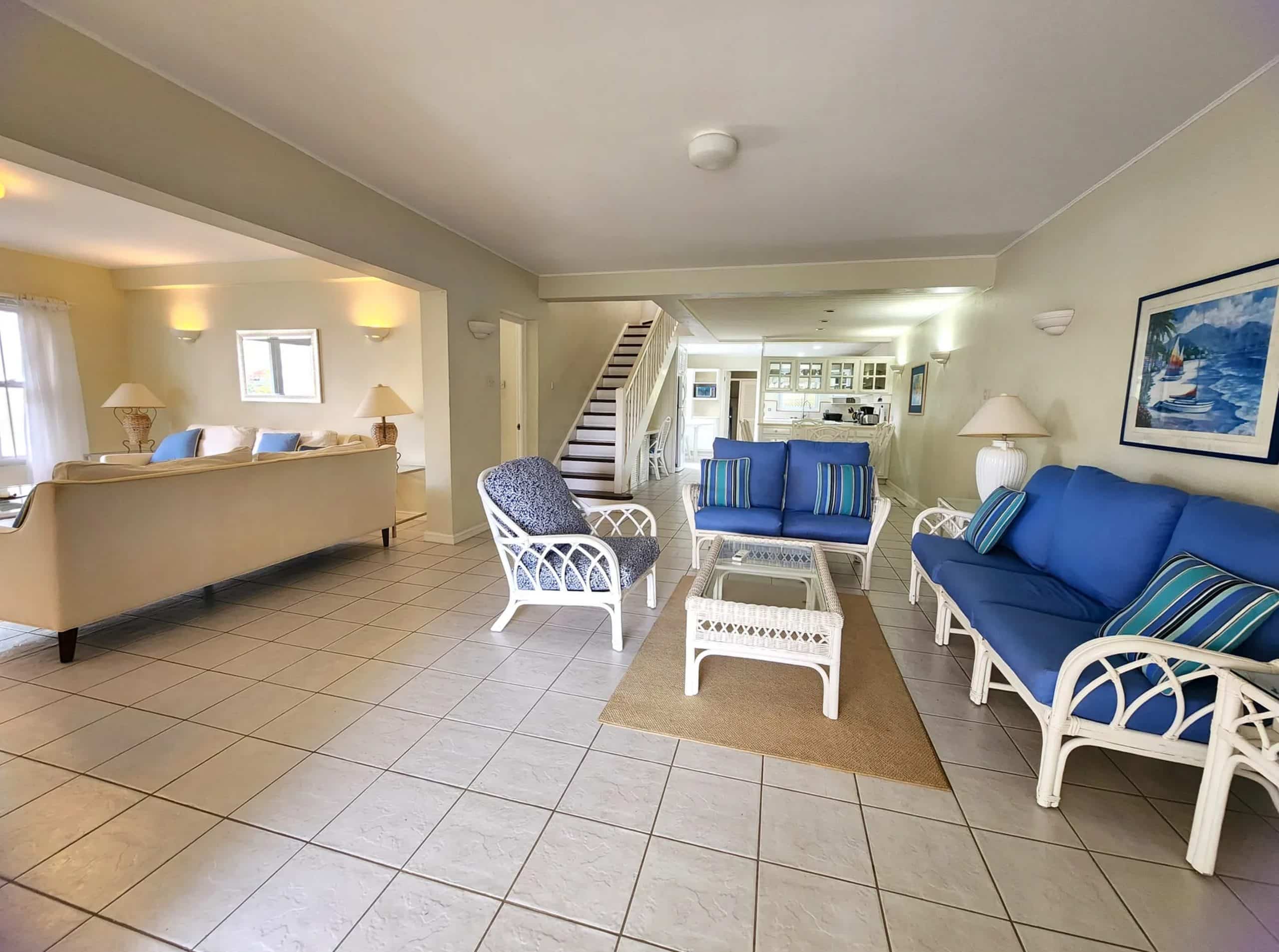 On the upper floor, there are three air-conditioned bedrooms each with an ensuite bathroom. Two bedrooms with King beds and the 3rd bedroom has 2 twin beds.